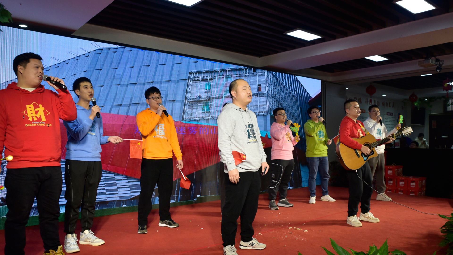 技術研發中心和技術工藝部的同事們用歌曲串燒《青春飛揚》展示了他們的藝術才華,彰顯了團隊的活力與創造力,口琴與吉他的完美融合,讓現場的氛圍更加熱烈。