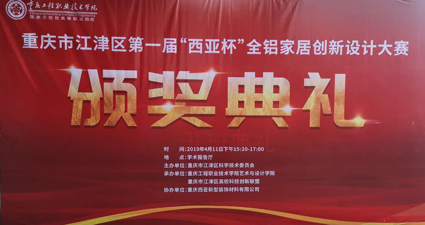 華龍網(wǎng)-新重慶客戶端4月11日21時(shí)57分訊(凃小義)今(11)日下午,重慶市江津區(qū)第一屆“西亞杯”全鋁家居創(chuàng)新設(shè)計(jì)大賽頒獎(jiǎng)典禮在重慶工程職業(yè)技術(shù)學(xué)院舉行。據(jù)了解,本次賽事經(jīng)歷了啟動、征稿、評審、巡展四個(gè)階段,歷時(shí)近10個(gè)月,給相關(guān)院校提供了一個(gè)相互交流、相互促進(jìn)的機(jī)會,為設(shè)計(jì)專業(yè)類的優(yōu)秀學(xué)生營造了展示創(chuàng)新設(shè)計(jì)能力的舞臺。
